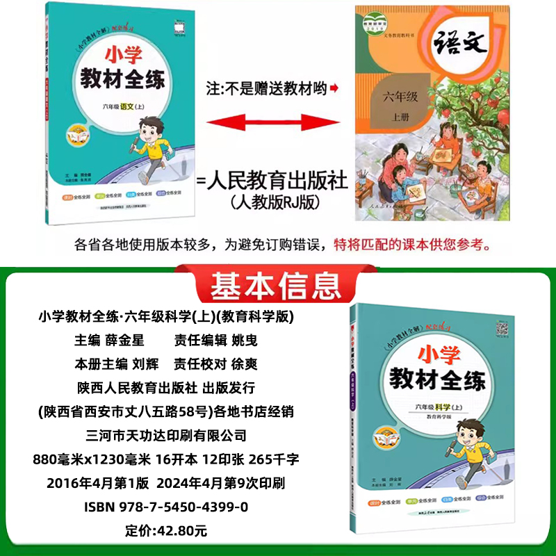 小学教材全解同步练习册测试卷作业书道德语文数学英语 三年级四年级五年级六年级上下册教育科学版 小学教材全练科学苏教版 教科版