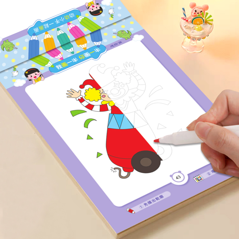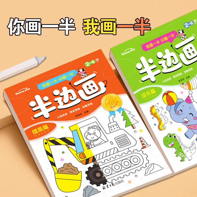 儿童绘画本半边画全6册涂鸦本幼儿园小学生速成分步学画涂色本艺术兴趣启蒙本涂色由易到难分级智力开发绘画练习教材 抖音同款