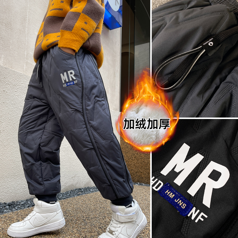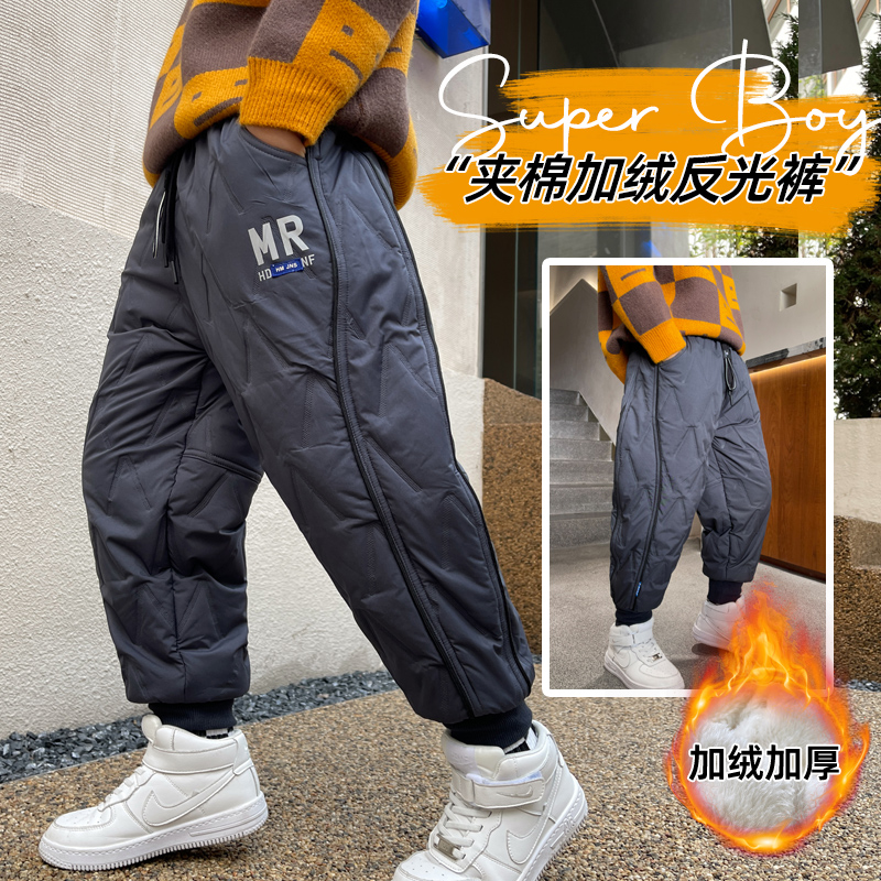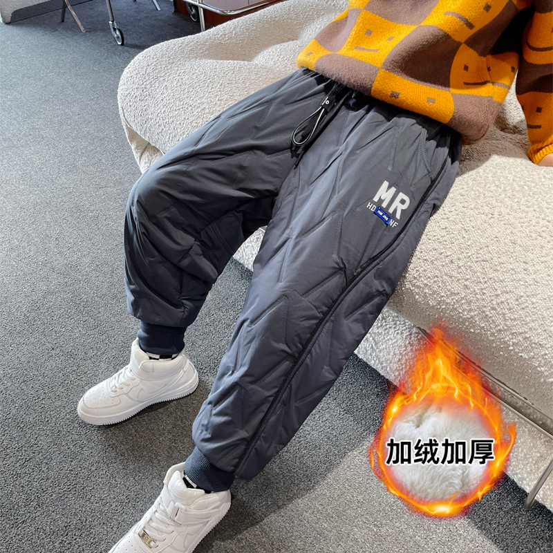 冬季 子秋冬款 2025新款 中大童加厚一体绒裤 加绒保暖运动裤 男童棉裤