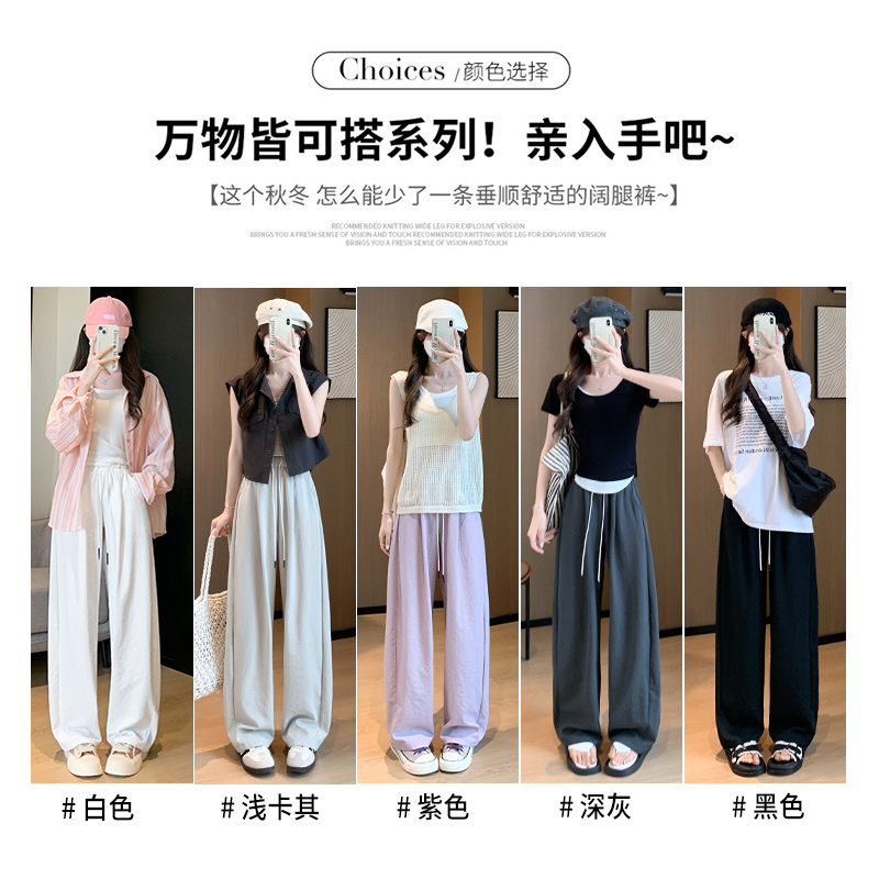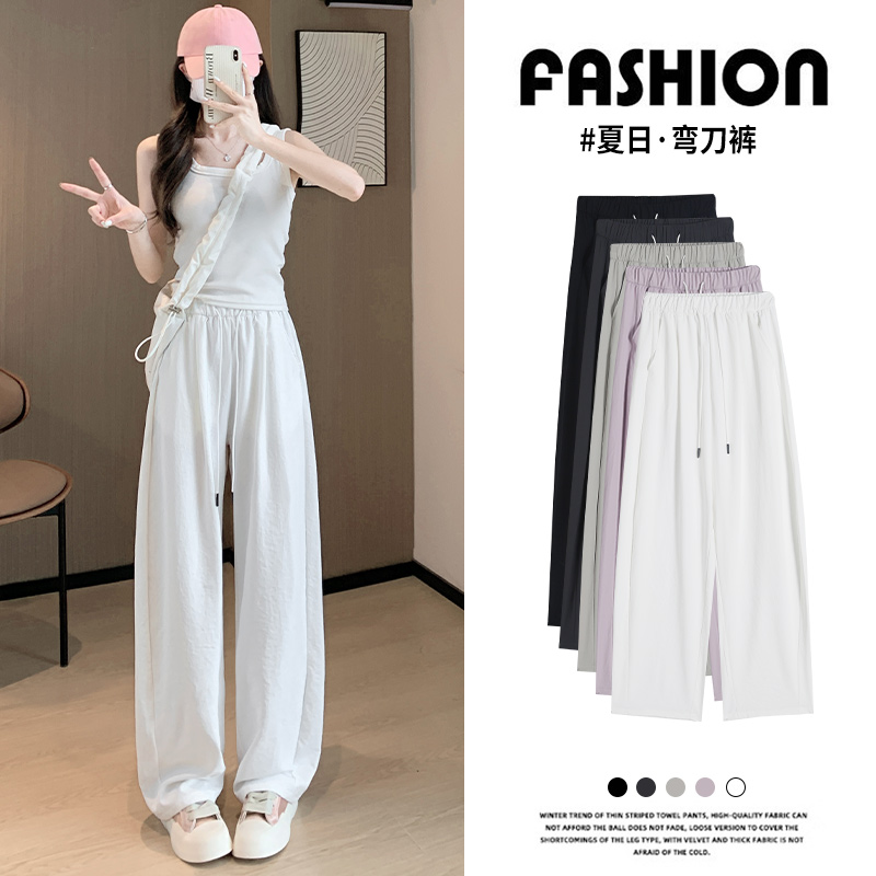 高腰垂感宽松休闲速干香蕉冰丝直筒运动裤 白色弯刀阔腿裤 女夏薄款