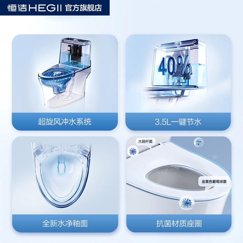 恒洁卫浴超旋风马桶节水坐便器143D 政府补贴15%