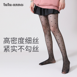 tutuanna夏季 防勾丝纯色爱心印花丝袜裸感超薄丝袜女 女丝袜薄款