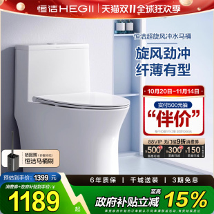 恒洁卫浴超旋风大冲力马桶静音节水家用陶瓷座便器虹吸式 911D