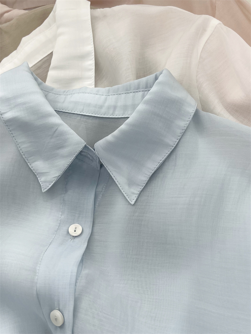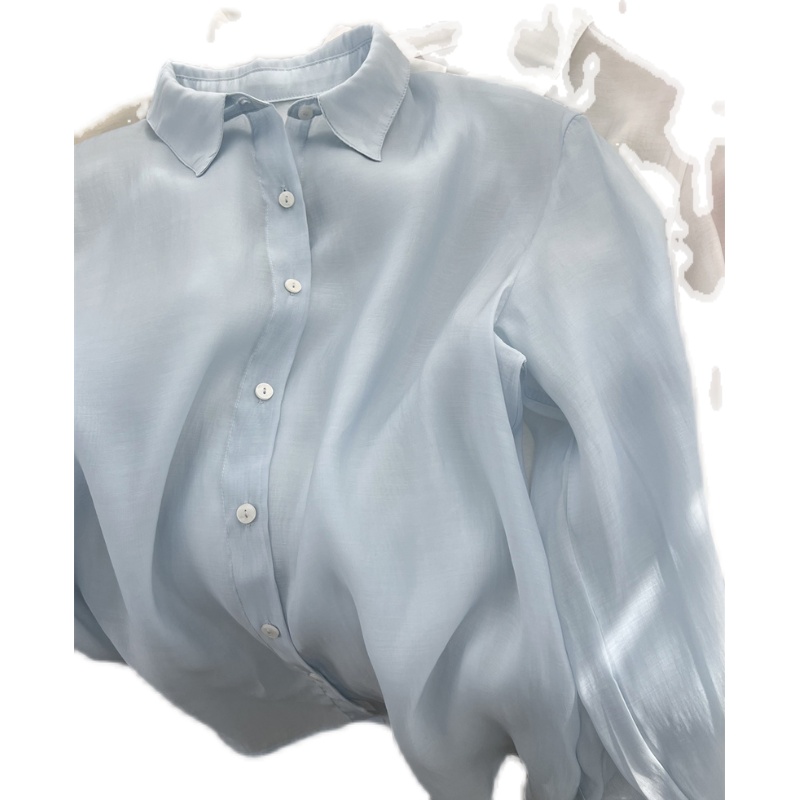 女士拉谷谷春秋长袖 木耳边白衬衫 LAGOGO法式 立领上衣 抗菌抗皱