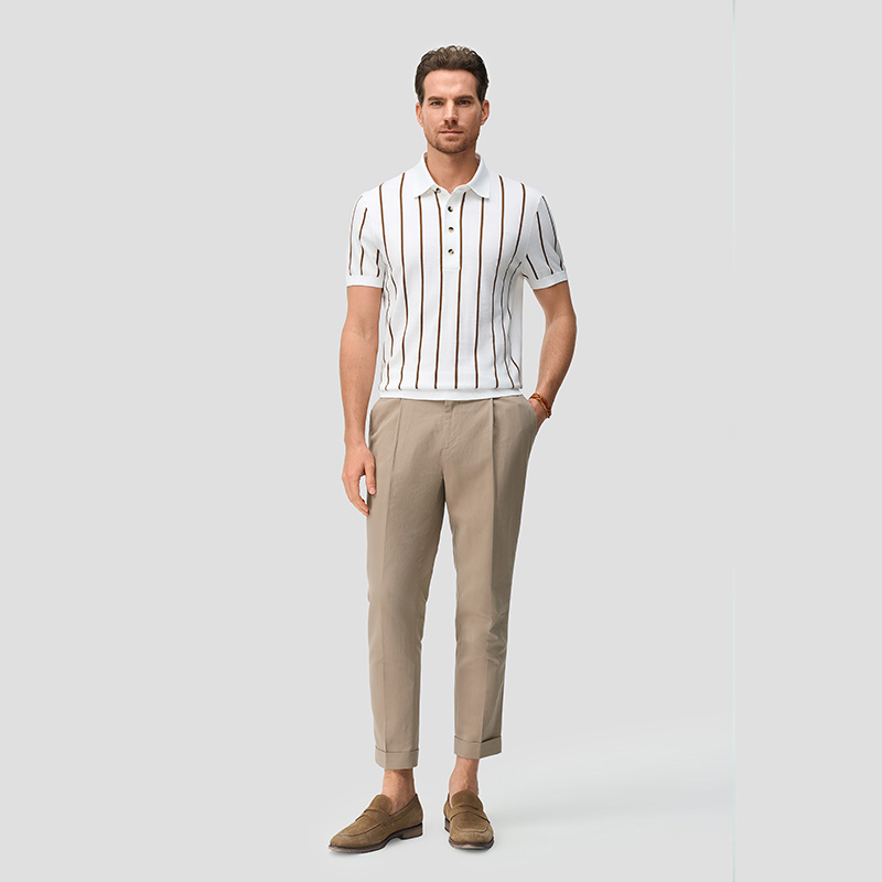 休闲裤 蓝豹男士 LAMPO 商务高腰直筒宽松那不勒斯休闲裤 棉麻