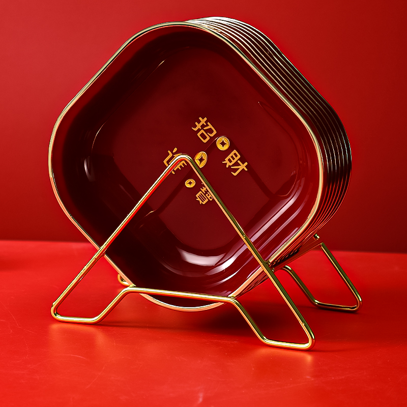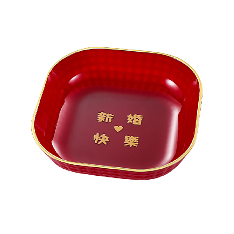 喜庆果盘客厅茶几家用乔迁红色碟子中式 新居水果盘结婚红盘糖果盘