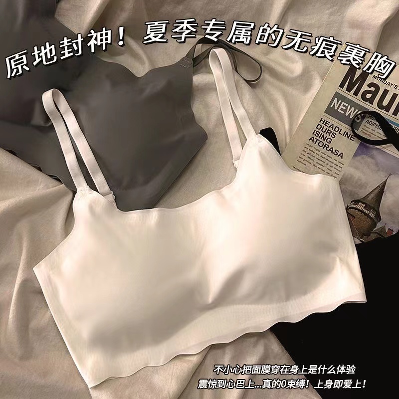 无痕冰丝内衣少女吊带运动文胸学生聚拢显胸小背心夏季 肩带固定