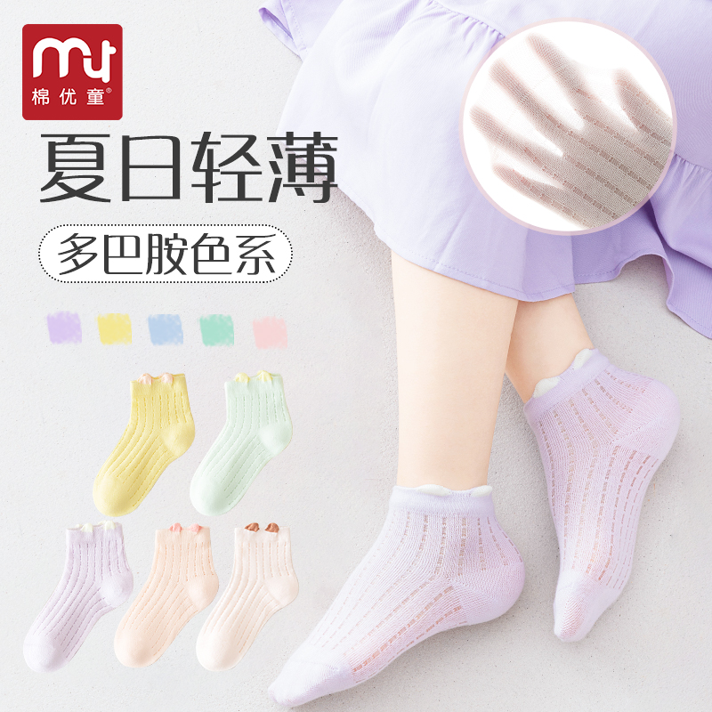 儿童袜子女童夏季 短袜夏天船袜女宝宝薄袜女孩多巴胺纯色棉袜 薄款