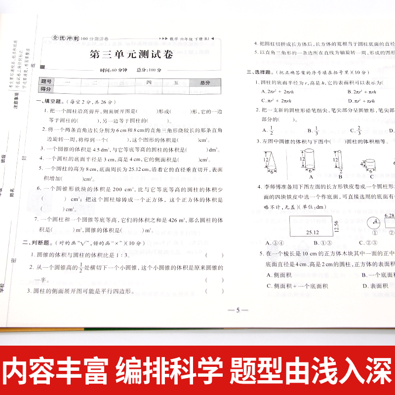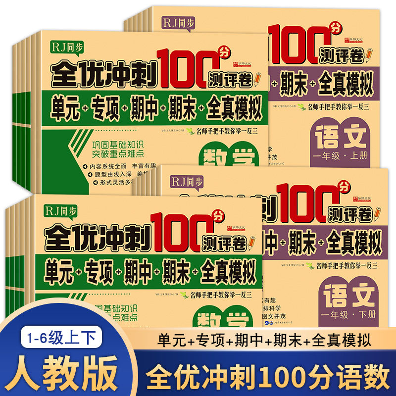 小学生试卷测评卷一二三四五六年级全优冲刺100分全套人教版 期中期末练考模拟练习 上下册语文数学英语123456同步专项训练单元