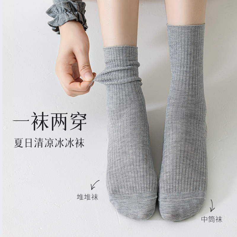 白色春秋2025中筒袜夏天搭配小皮鞋 薄款 芭蕾风堆堆袜 夏季 袜子女款