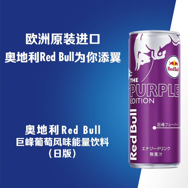 奥地利RedBull进口红牛运动开车运动提神功能饮料葡萄味24罐 原箱