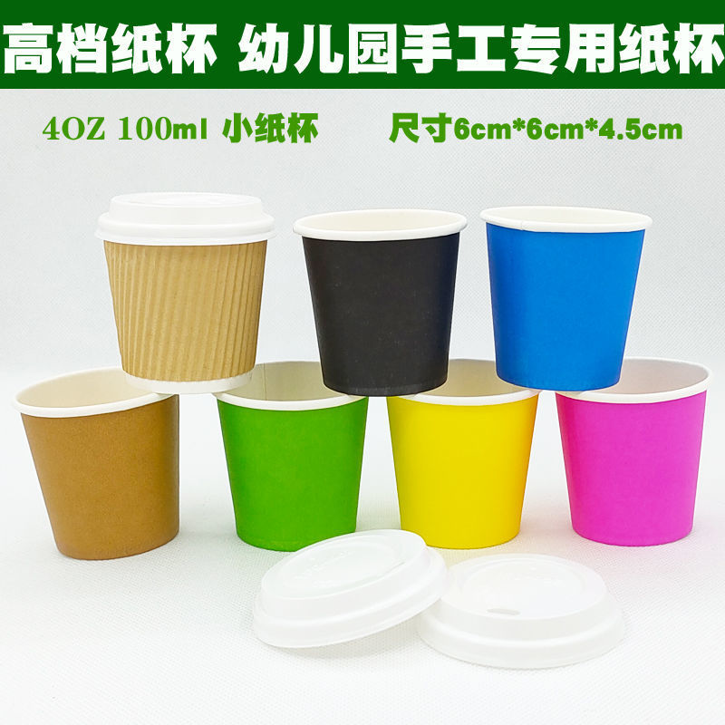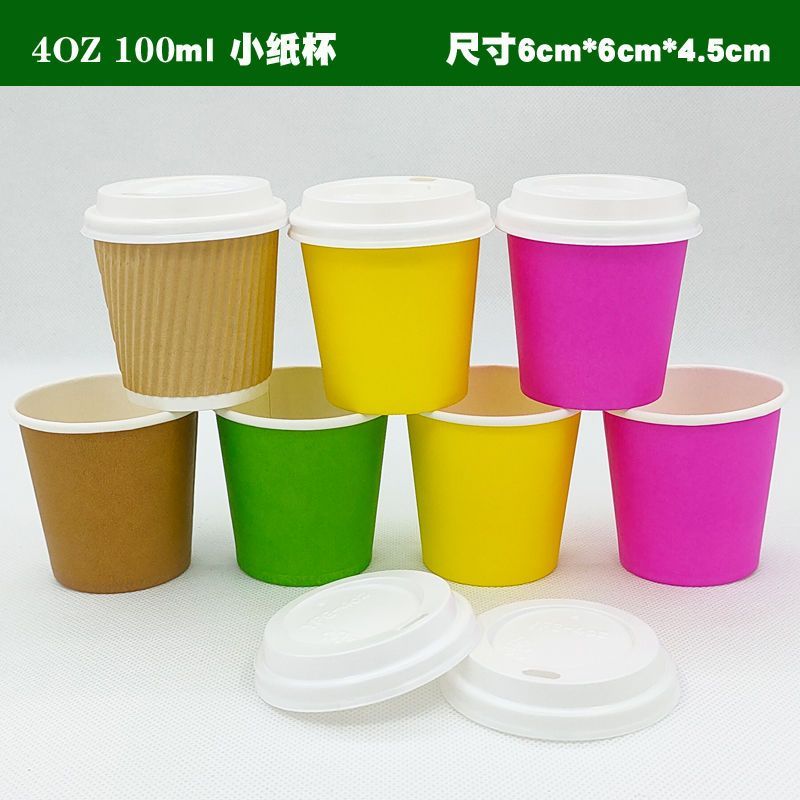 4OZ 100毫升纯色加厚手工一次性彩色小纸杯试吃带盖子带勺子品尝