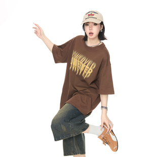 印花短袖 宽松半袖 T恤女夏季 街头风情侣款 上衣 潮牌美式 2025新款