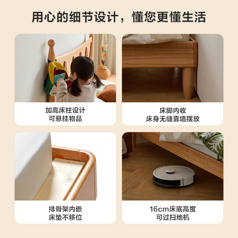 妈妈 选择蒙氏地台床儿童床全榉木实木床男女孩单人地板床榻榻米