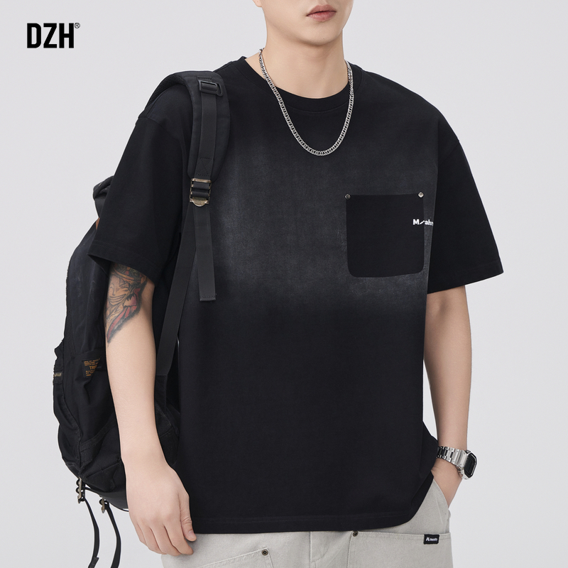 夏季 男士 高街2025年新款 美式 黑色上衣 重磅水洗t恤男重磅潮牌短袖