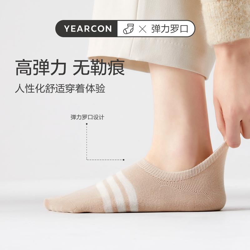 袜子5双装 YEARCON 女士高跟鞋 浅口薄款 意尔康女袜船袜隐形夏季