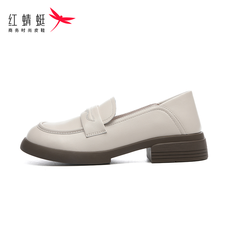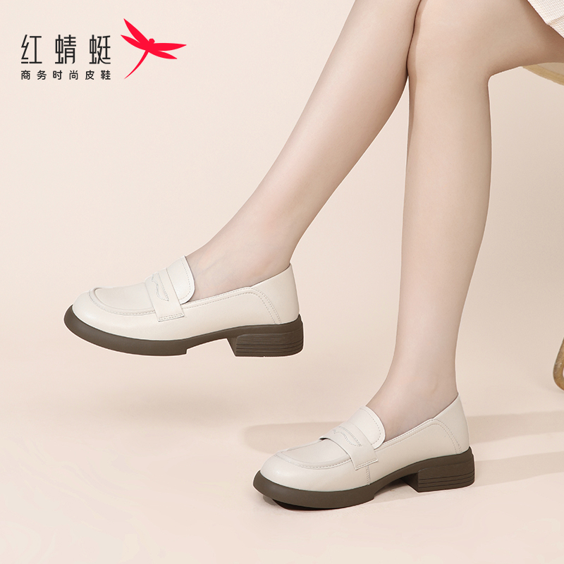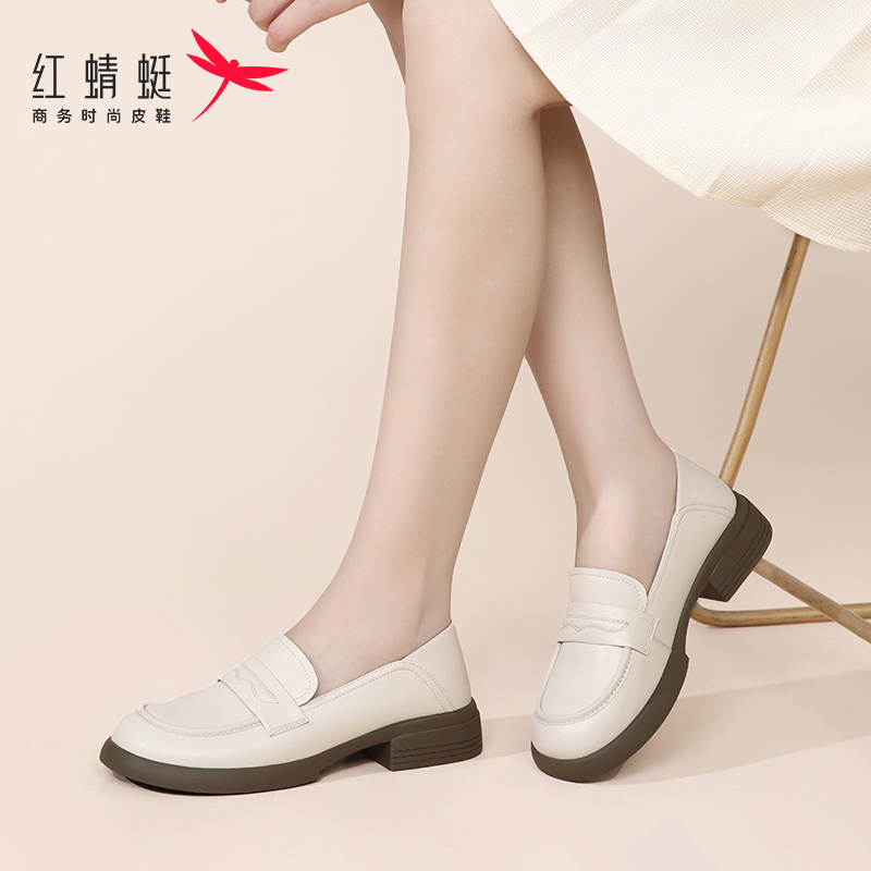 豆豆鞋 一脚蹬小皮鞋 秋季 时尚 女 红蜻蜓女鞋 百搭英伦乐福鞋 真皮单鞋