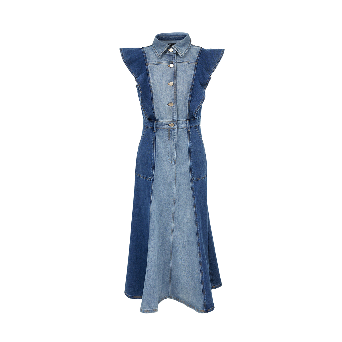商场同款 新款 含棉深浅色牛仔荷叶边 Moda奥莱连衣裙2025夏季 Vero