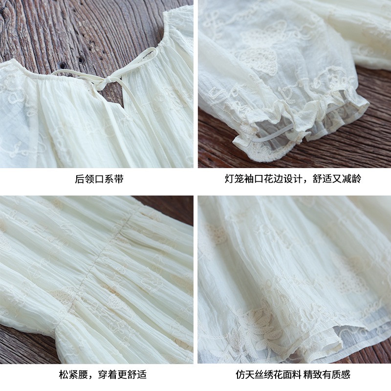 佐丹奴田园风长裙女新款 连衣裙05465076 减龄娃娃领蛋糕裙插肩长袖