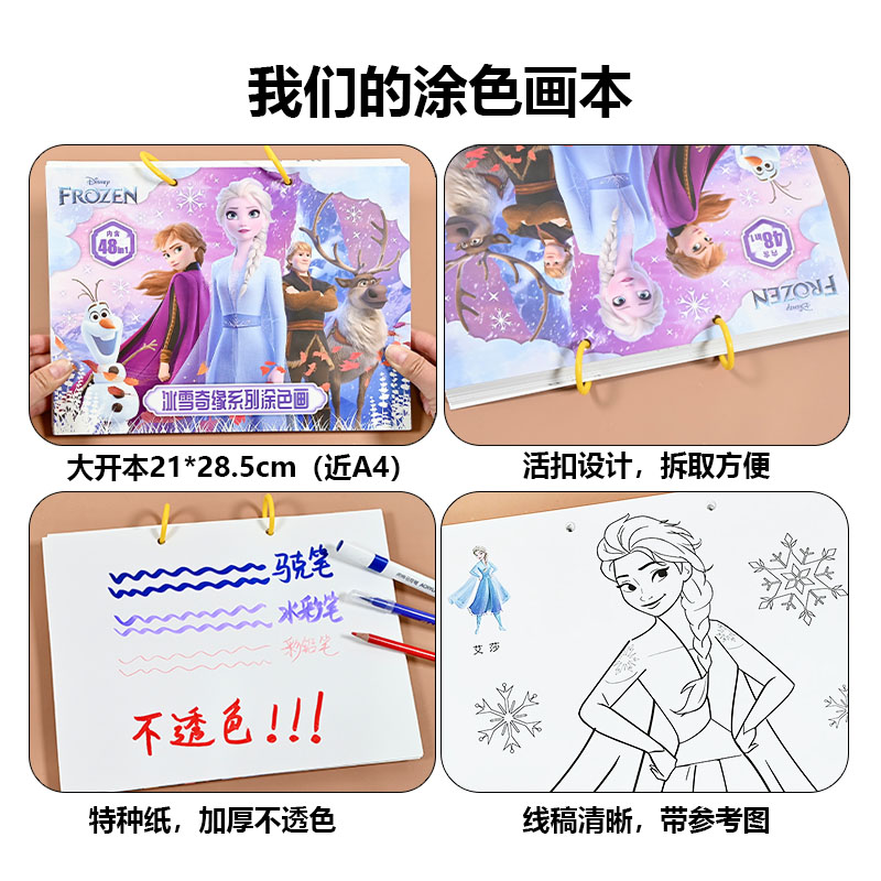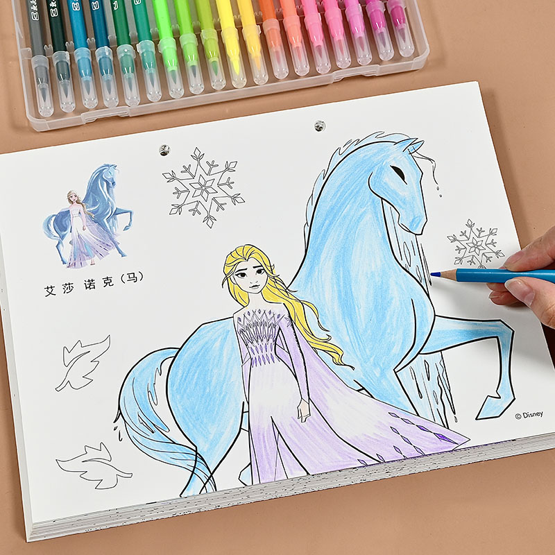 冰雪奇缘爱莎公主涂色书艾莎安娜填颜色画画本5岁 女孩儿童绘画册
