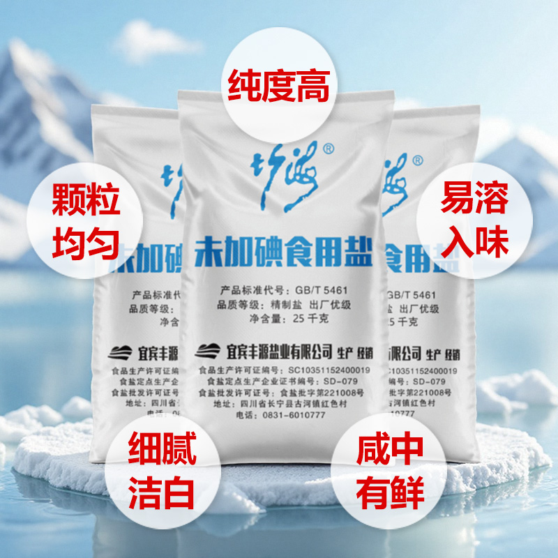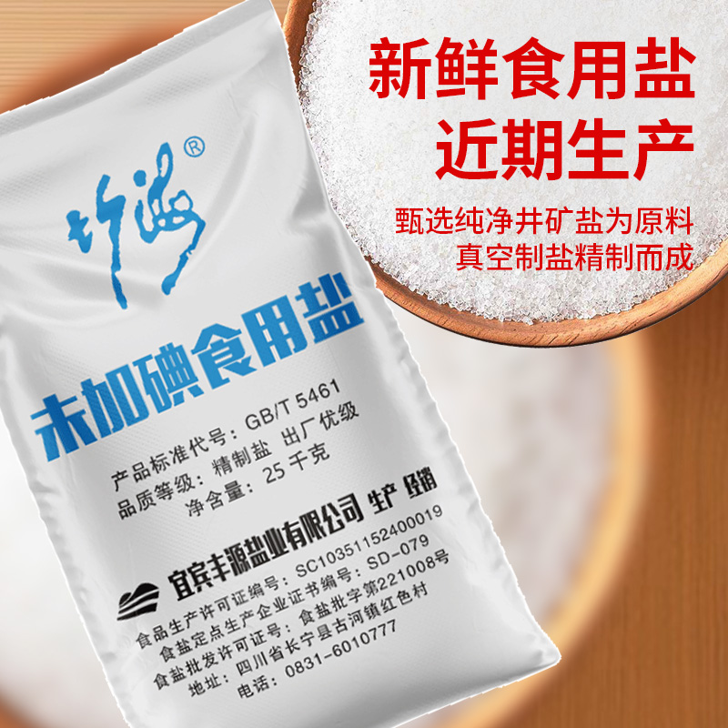 一整袋细件 精制盐未加碘食用盐25kg堂餐生产厅腌制批发散装 50斤