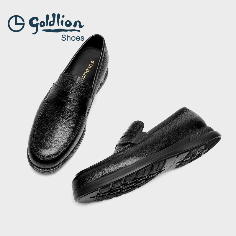 2025新款 商务休闲豆豆鞋 真皮男士 一脚蹬懒人鞋 乐福鞋 Goldlion男鞋