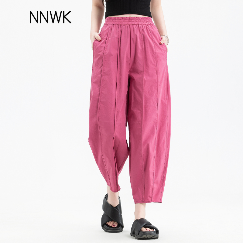 女2025新款 百搭宽松镰刀休闲裤 夏季 小个子女裤 薄款 粉色九分灯笼裤