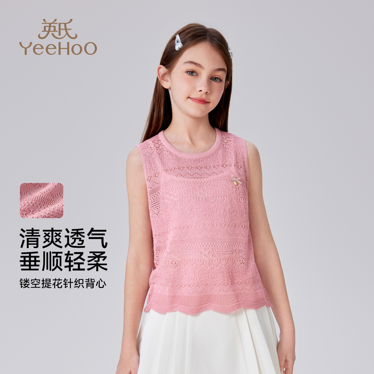 t恤中大童上衣 儿童甜美莱赛尔无袖 英氏女童针织背心2025夏季 薄款