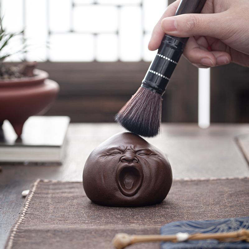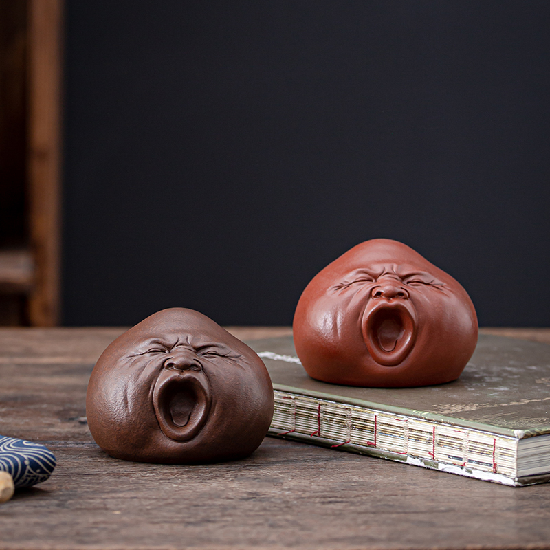 茶宠打哈欠人头像紫砂茶宠精品可养搞怪表情茶玩茶具茶桌摆件