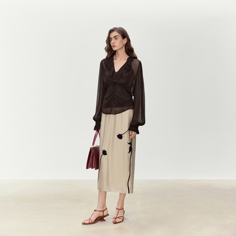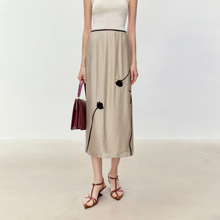 优雅气质半裙 新款 LYNEE 玫瑰贴布绣肌理垂感简约直筒半身裙女夏季