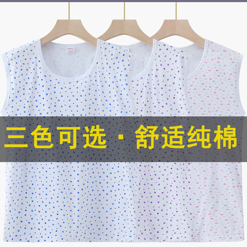 薄 打底内衣老太太汗衫 妈妈宽肩纯棉背心奶奶夏季 中老年人宽松无袖