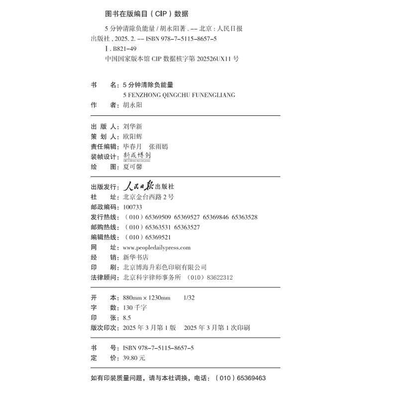 5分钟清除负能量胡永阳自我实现人民日报出版 社新华书店正版