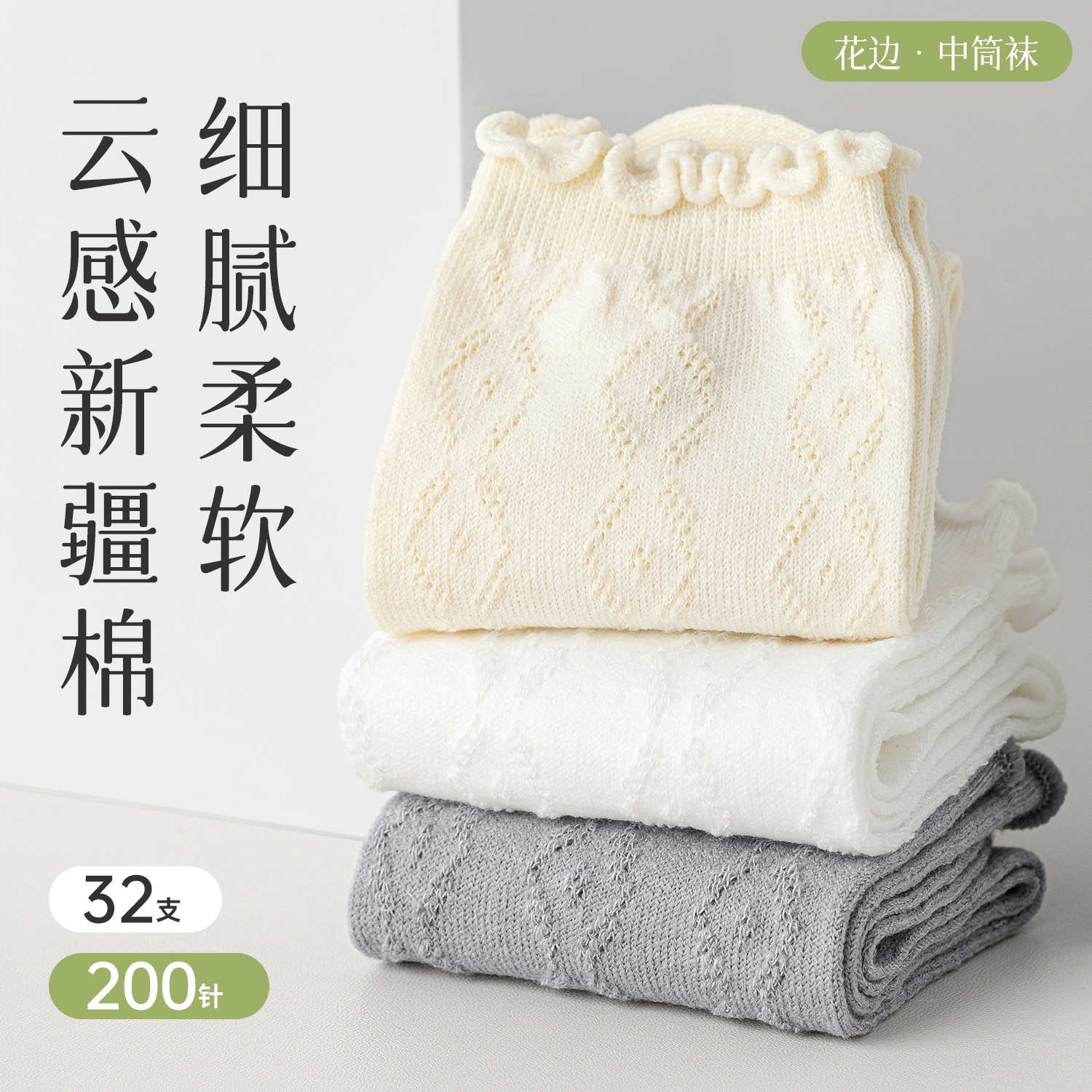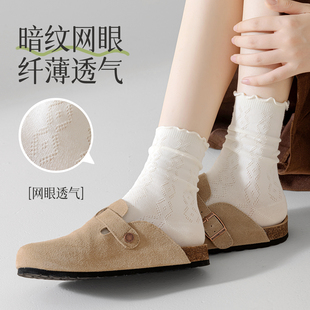 花边袜子女夏季 堆堆长袜日系甜美网眼透气吸汗防臭中筒袜夏天 薄款
