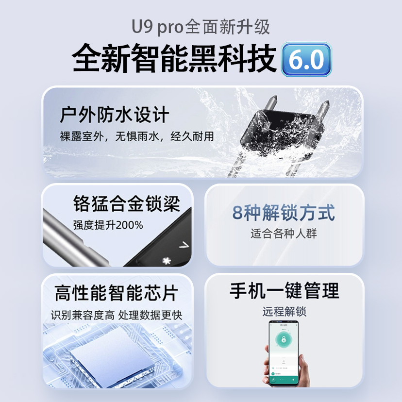 指纹u型锁办公室玻璃门商铺店铺室外智能电子插锁U形锁挂锁密码 锁