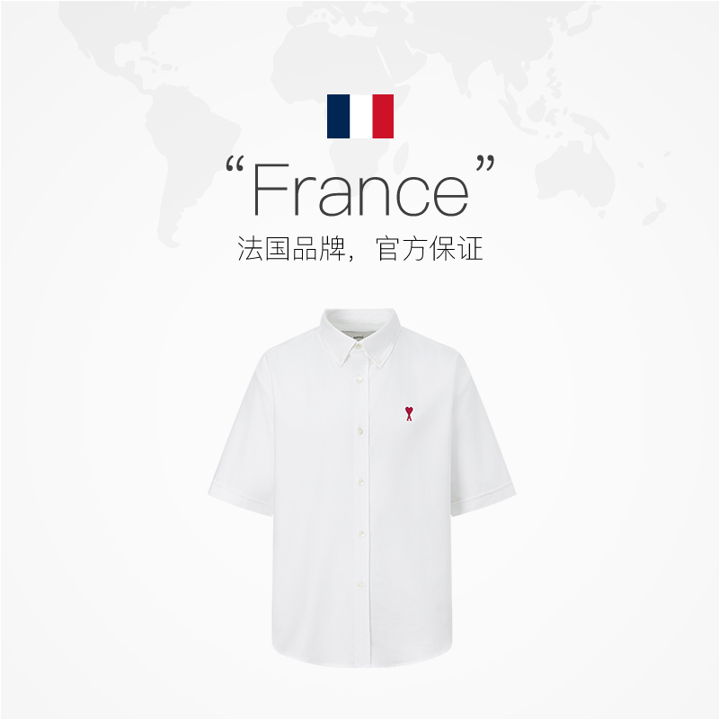 自营 棉质休闲时尚 AMIPARIS男士 衬衫 中性翻领上衣 刺绣爱心短袖