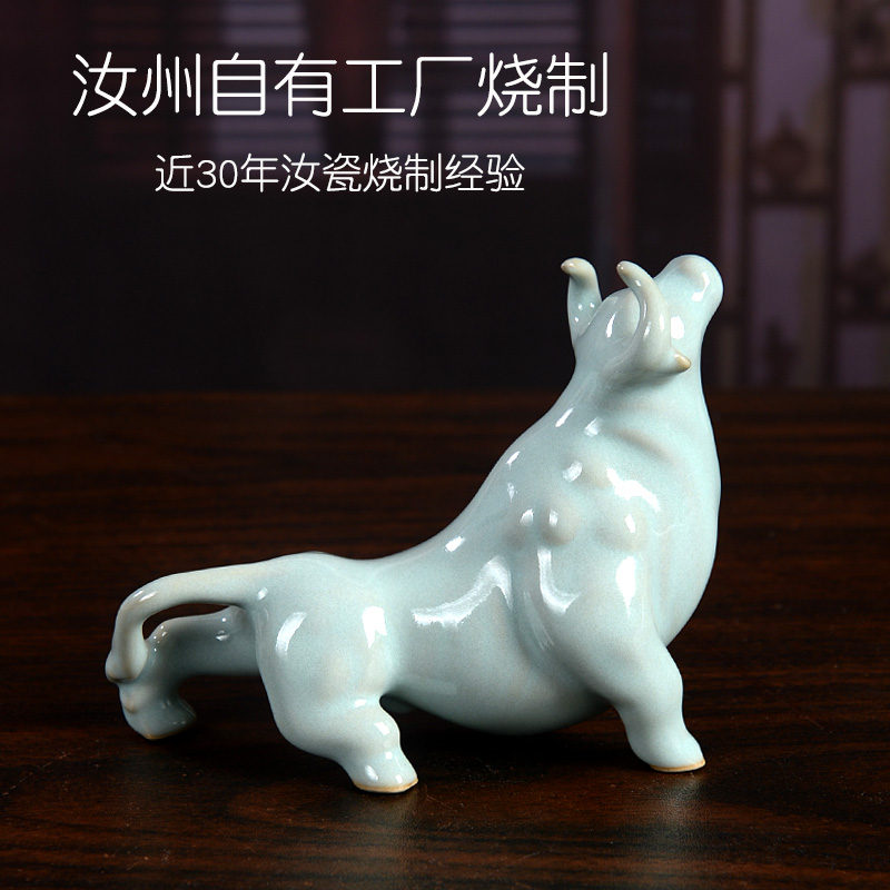 汝窑汝瓷牛气冲天生肖牛摆件茶宠可养茶道配件茶桌茶台装 饰品摆设