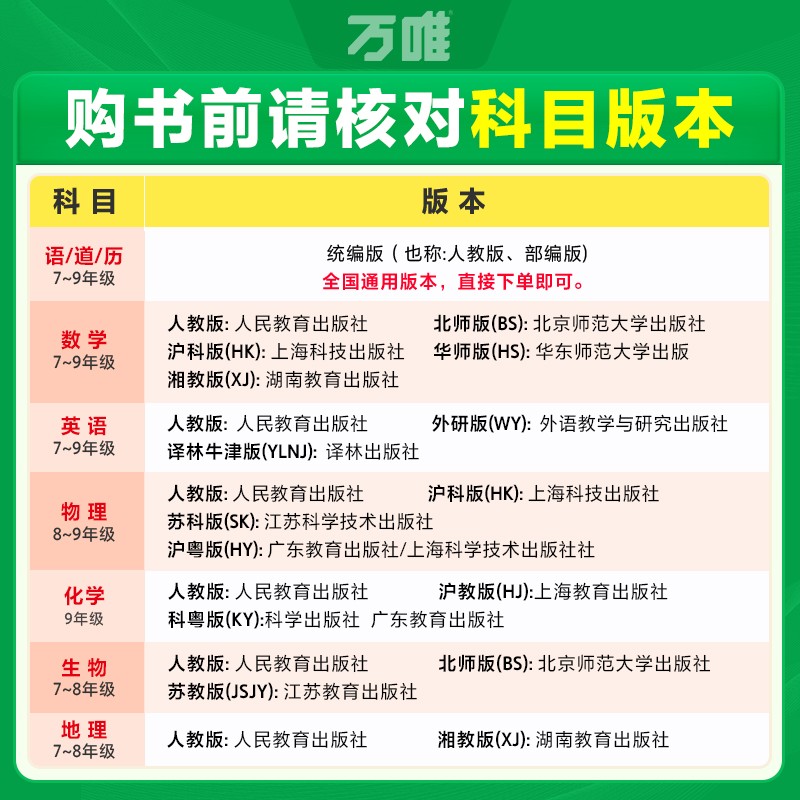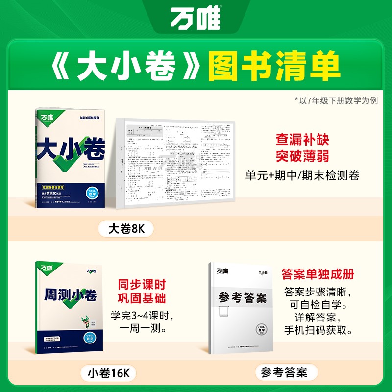 2026万唯大小卷七年级八九年级上册试卷测试卷全套人教版 北师初中语文数学英语物理化学地理生物期末同步下册七上初一二三中考万维