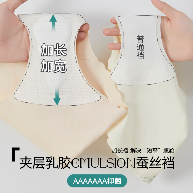大码 无痕透气亲肤薄真丝莫代尔三角裤 女 蕉内银皮500E女士内裤 3件