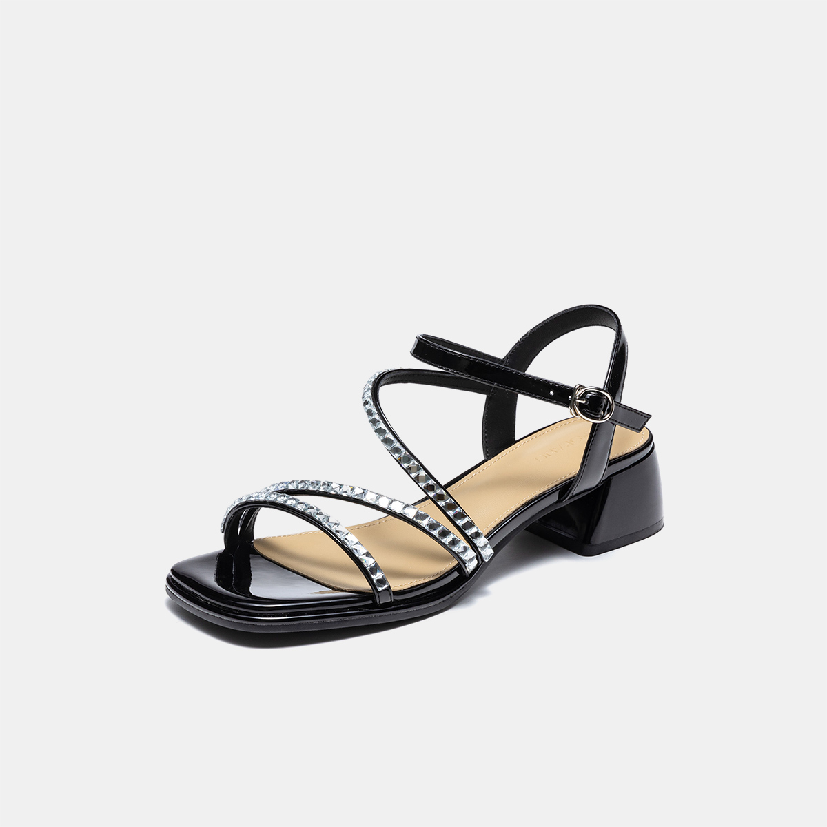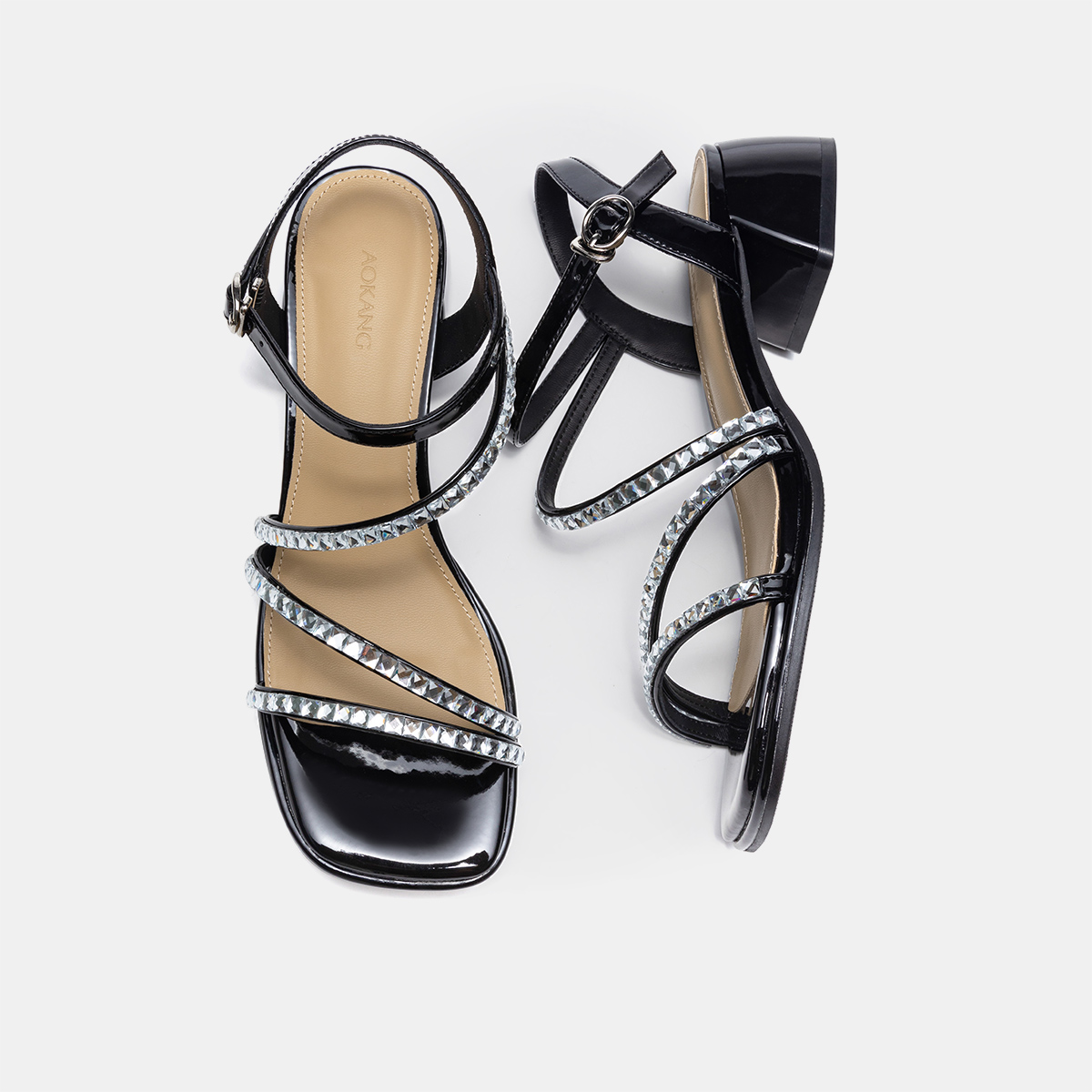 凉拖水钻粗跟小方跟罗马风绑带一字带女凉鞋 凉鞋 2025夏季 奥康女鞋