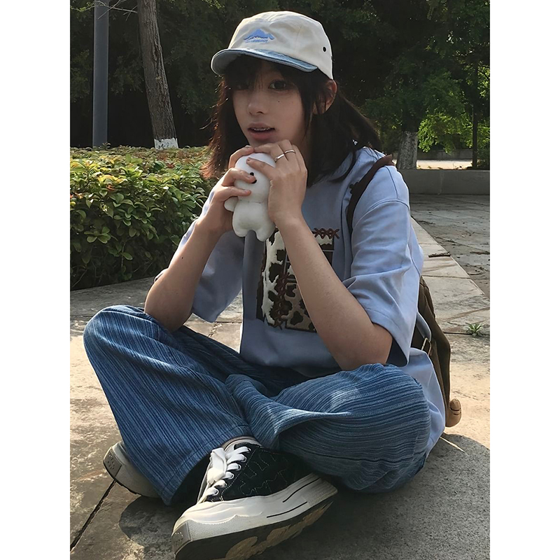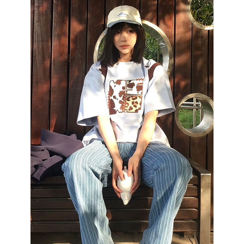 辣妹修身 设计感小众V领纯棉长袖 美式 打底衫 上衣 T恤女春秋内搭短款