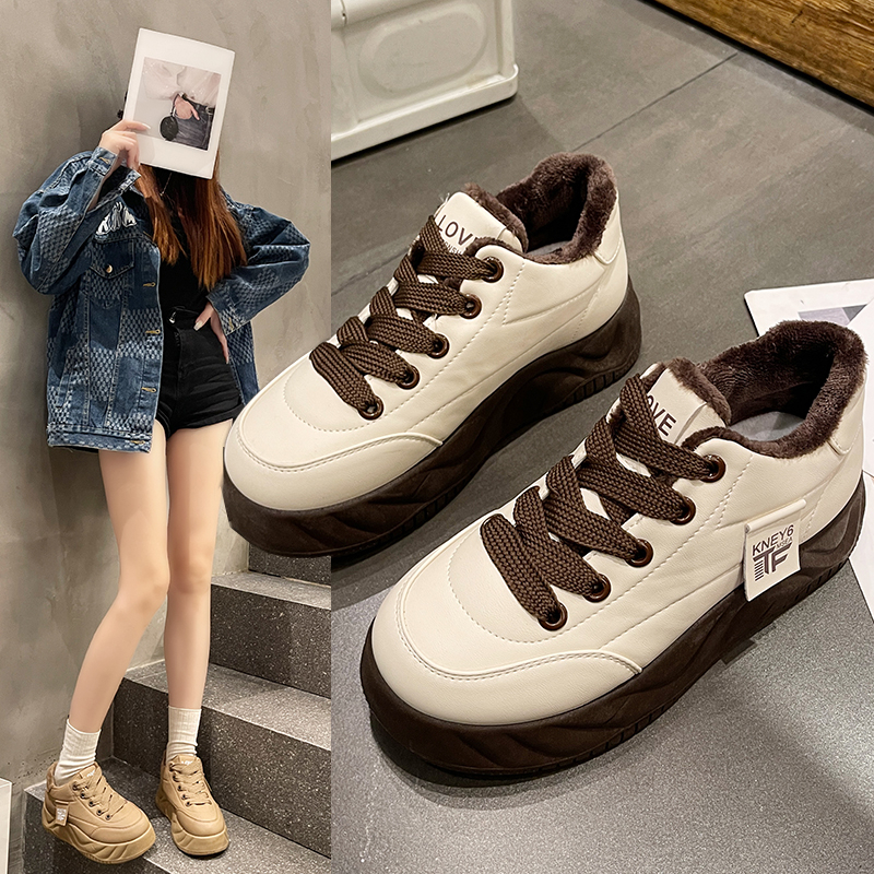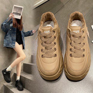 女2025秋冬季 潮女鞋 新款 丑萌运动休闲棉鞋 板鞋 厚底加绒保暖面包鞋