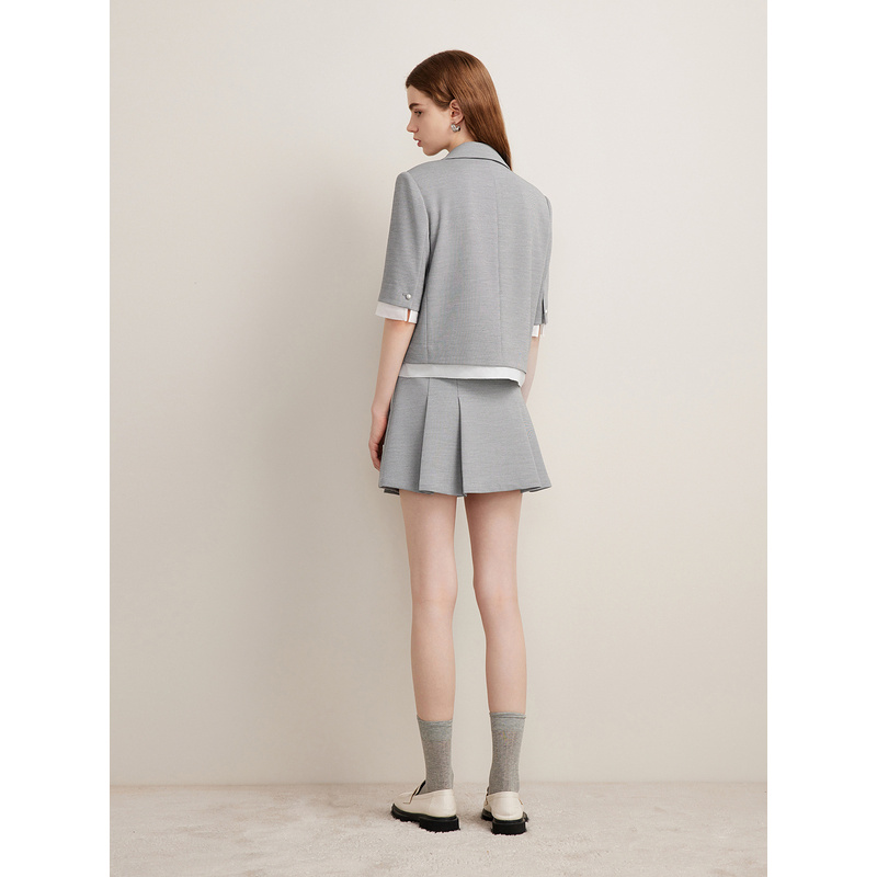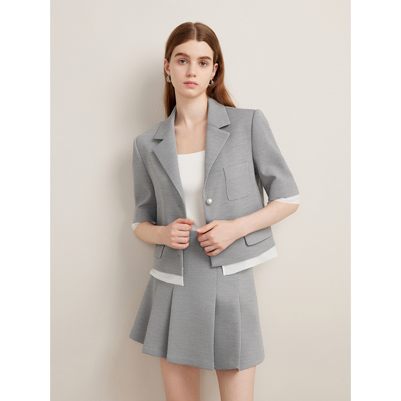 Goodland美地秋季 短外套 格雷系华夫格肌理休闲西装