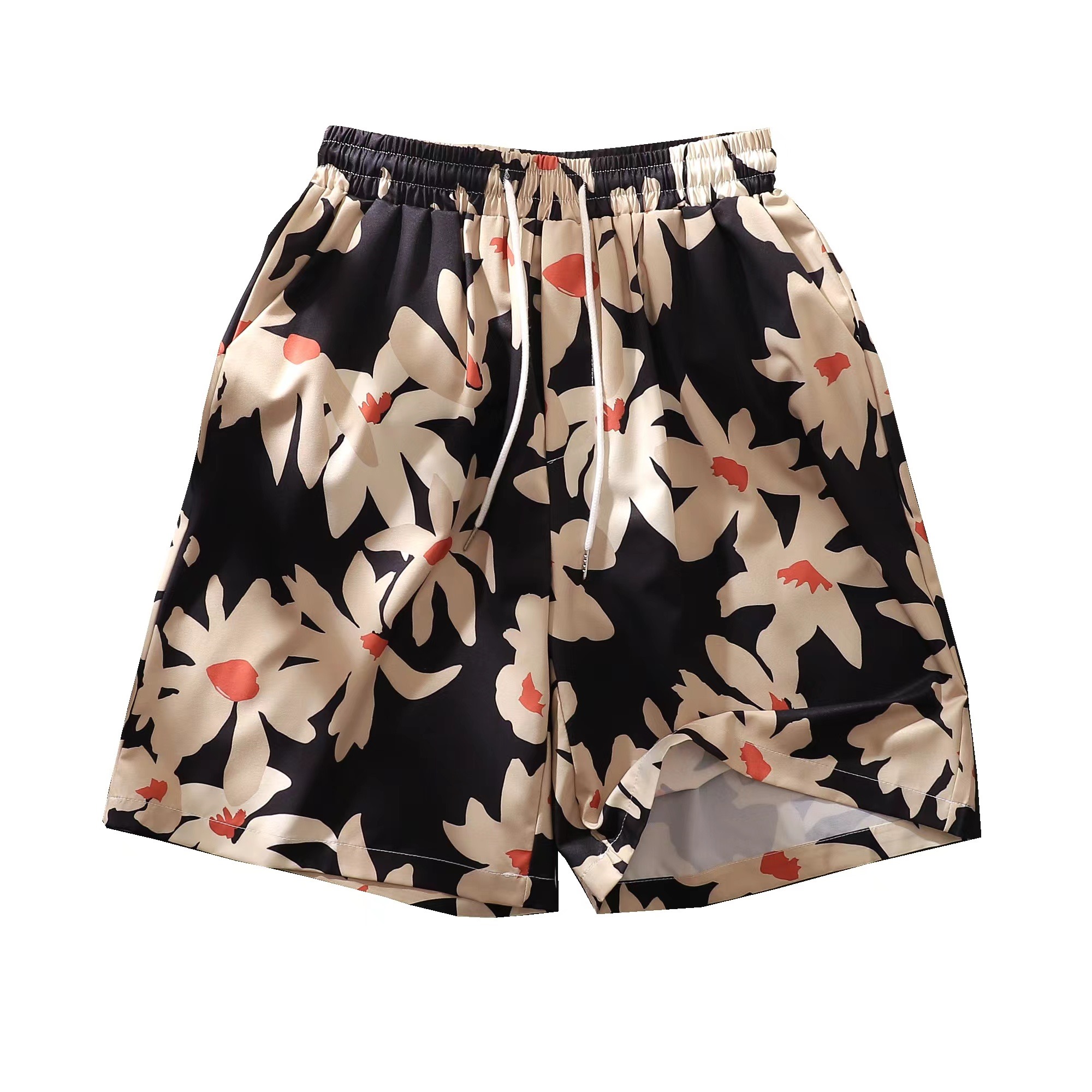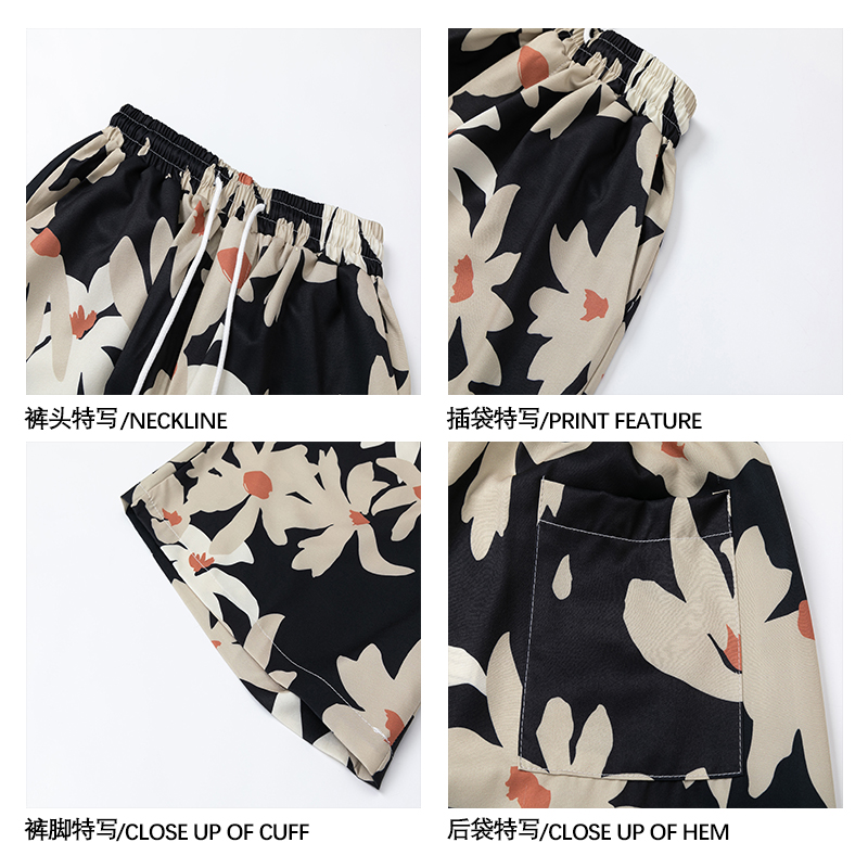 沙滩短裤 男海边夏威夷风花卉满海南风情印休闲宽松情侣运动五分裤