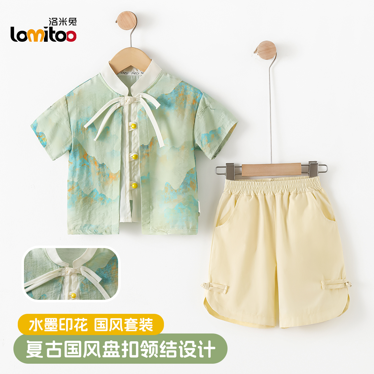 清仓 短袖 洛米兔儿童国风套装 中小女童满印新中式 短裤 2025夏季