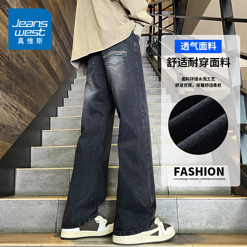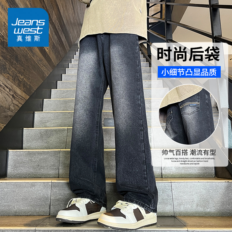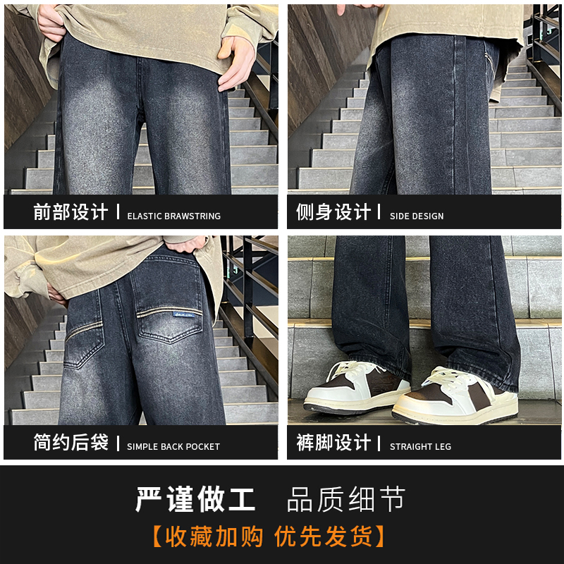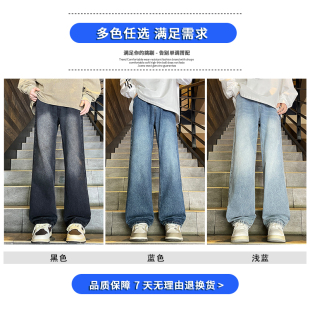 阔腿裤 丹宁原色牛仔裤 新款 2025秋季 子 男宽松直筒加绒加厚休闲男士