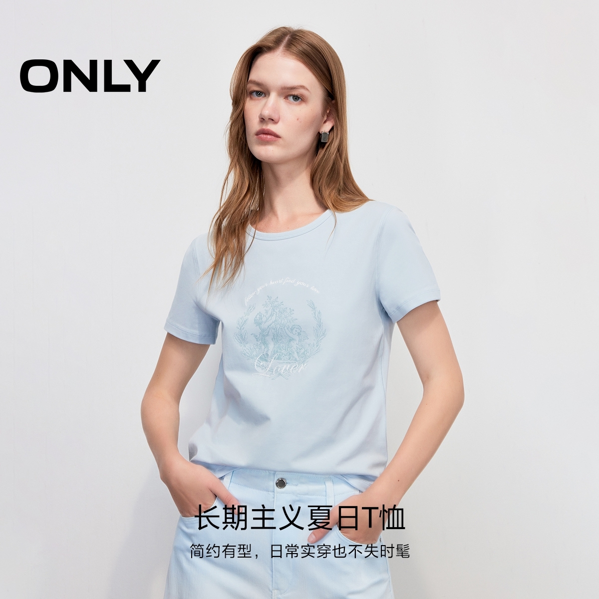 型经典 简约百搭字母刺绣直身版 圆领正肩T恤女 新款 ONLY2025夏季
