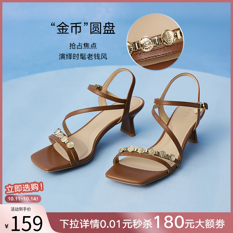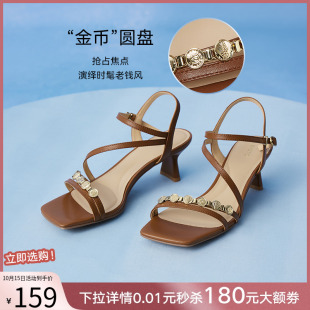 女凉鞋 百思图2025夏季 气质通勤一字带粗跟高跟鞋 时尚 C6602BL5 新款