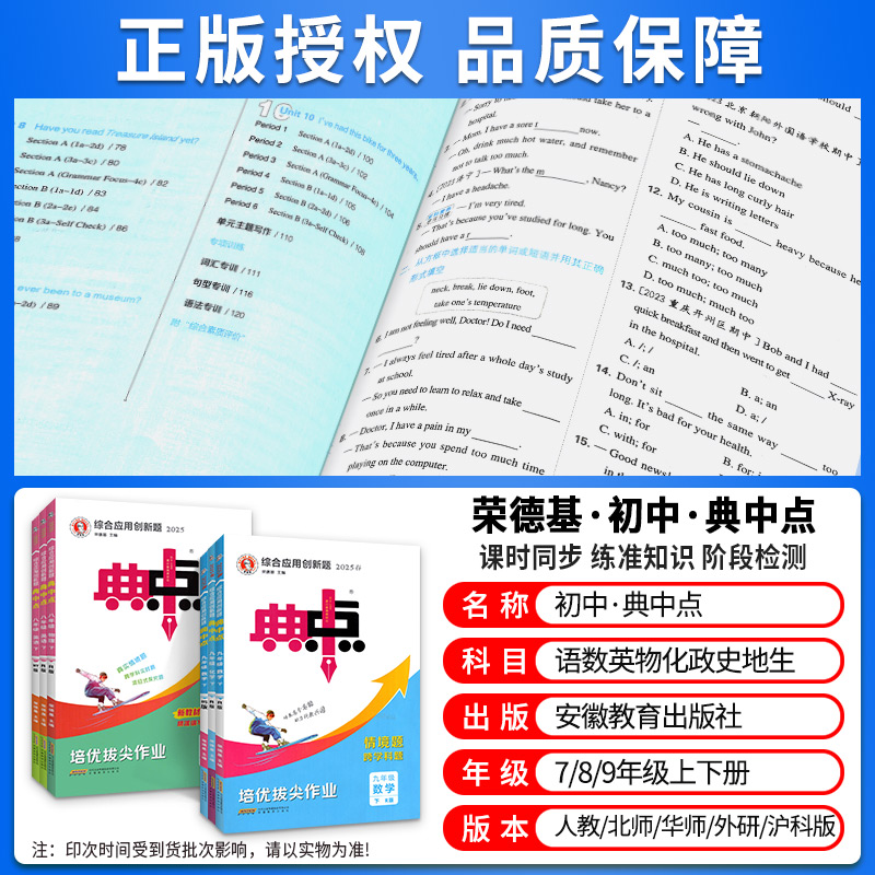 2025典中点七年级八年级九年级上册下册语文数学英语物理化学全套人教版 北师大初中初一初二三教材同步练习册训练辅导资料书荣德基