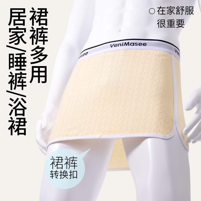 内裤 无裆围裙裙裤 夏 男宽松睡裙半身阿罗裤 A类婴儿棉7A抗菌裸睡裤