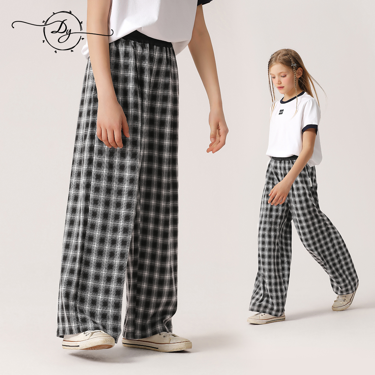 中大童速干防蚊虫透气运动长裤 女童格子防蚊裤 新款 2025夏季 潮 薄款